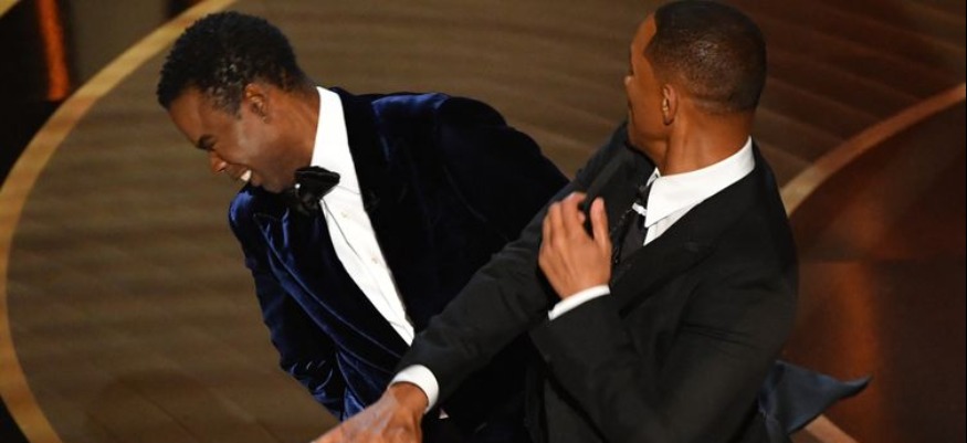 Le comédien Chris Rock vient de plaisanter sur le crâne rasé de Jada Pinkett-Smith. Son mari, Will Smith, monte sur scène et le frappe. Toute la salle croit à un gag. Mais la gifle est réelle et quand Chris Rock tente de dédramatiser la situation, Will Smith, qui a pourtant bâti sa carrière sur son charme et son humour, ne se calme pas. « Le nom de ma femme ne sort pas de ta putain de bouche », crie l’acteur.