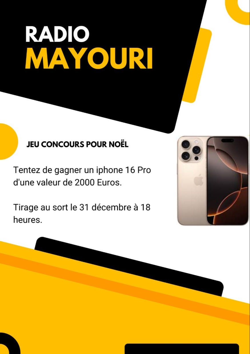Jeu Concours Radio Mayouri, iphone 16 Pro à gagner, d'une valeur de 2000 Euros