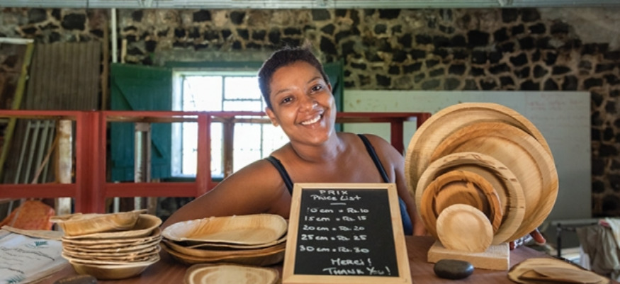 Dans le Sud de l’île, sur le domaine sucrier de Bel Ombre, une petite entreprise , Outgrowing, fabrique des assiettes en feuilles de palmier. Biodégradable et 100 % compostable, c’est une alternative naturelle à l’assiette en plastique ou en polystyrène.