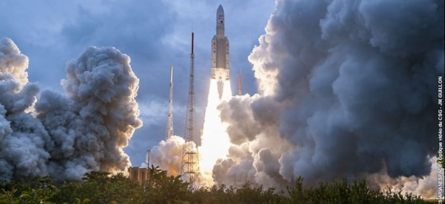 A 13h20 ce samedi 25 décembre, la fusée Ariane 5 transportant le James Webb s'est arrachée du pas de tir de la base de lancement de Kourou, en Guyane. Successeur désigné du légendaire Hubble, le télescope, fruit d'un partenariat entre les agences américaines, européenne et canadienne, est une machine à remonter le temps.