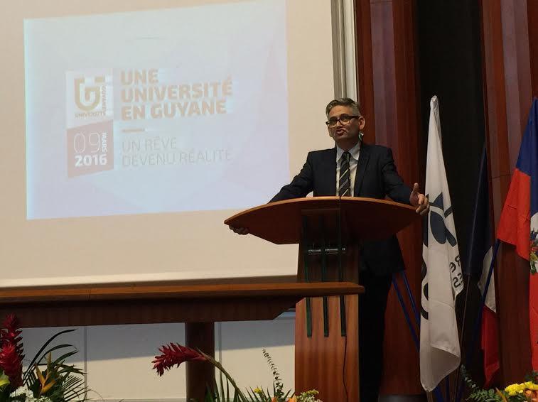 Le 11 novembre 2013 marque un tournant dans l’histoire de la Guyane, anciennement Pôle Universitaire de Guyane, l’UG (créée par le décret n°2014-851 du 30 juillet 2014) devient désormais pleinement autonome. Ancrée dans son territoire, l’offre de formation répond aux enjeux socio-économiques auxquels est confrontée la Guyane : santé tropicale, biodiversité, valorisation des ressources naturelles, interculturalité, plurilinguisme, inclusion sociale…